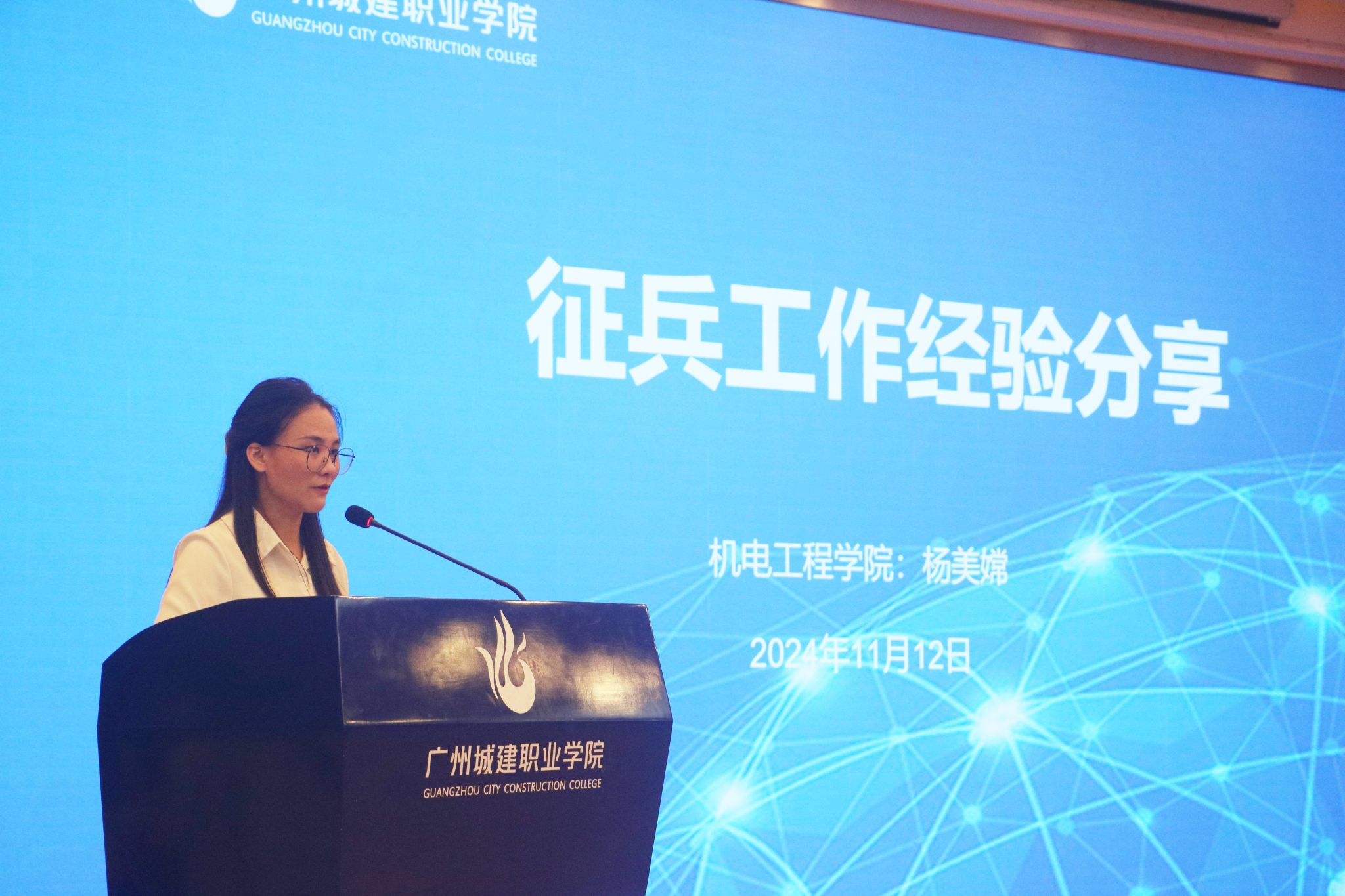 信息工程學(xué)院黨委書記、副院長劉杰和機(jī)電工程學(xué)院輔導(dǎo)員楊美嫦分別作為2024年征兵先進(jìn)單位代表、征兵工作先進(jìn)個(gè)人代表上臺(tái)進(jìn)行經(jīng)驗(yàn)分享。