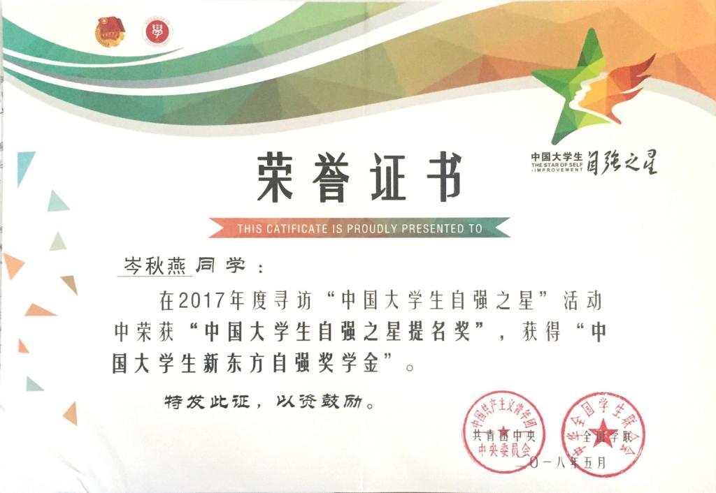 我校學(xué)子榮獲“中國大學(xué)生自強(qiáng)之星”提名獎