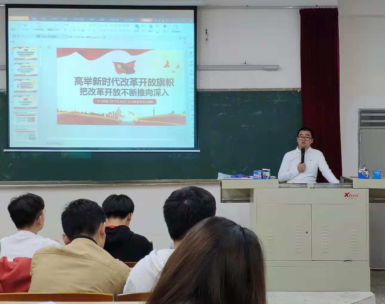 會上,劉杰從“習(xí)近平總書記在廣東考察紀(jì)實(shí)”和“習(xí)近平對廣東提出四個工作要求”兩個方面帶領(lǐng)大家集中學(xué)習(xí)了習(xí)近平總書記廣東考察重要講話精神,并傳達(dá)了廣東共青團(tuán)高校戰(zhàn)線召開學(xué)習(xí)貫徹習(xí)近平總書記視察廣東重要講話精神等內(nèi)容,就團(tuán)省委武一婷副書記的三大要求一一部署:一是制定本校學(xué)習(xí)方案,團(tuán)學(xué)干部要持續(xù)學(xué)、深入學(xué)、反復(fù)學(xué);二是要運(yùn)用各種宣傳工具,突出“溫度”和“深度”;三是要求實(shí)、務(wù)實(shí)、扎實(shí)學(xué)習(xí)宣傳貫徹。