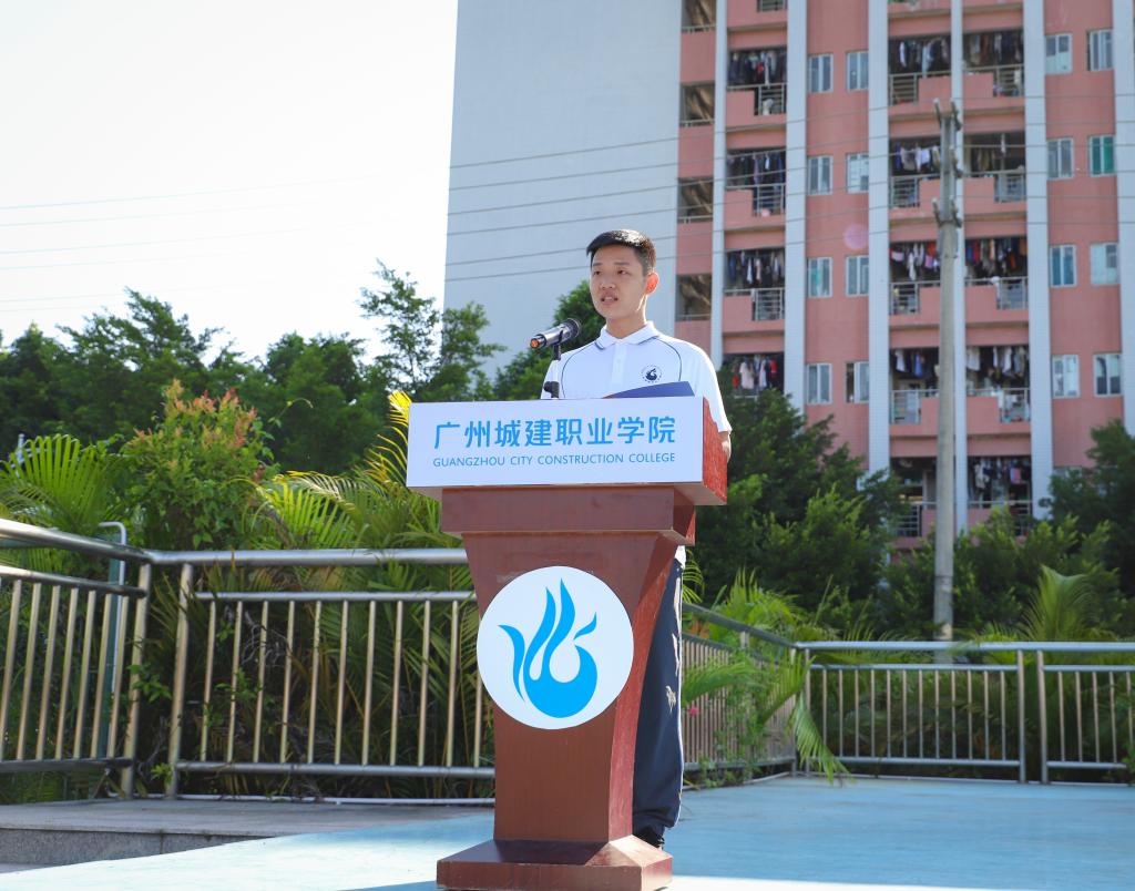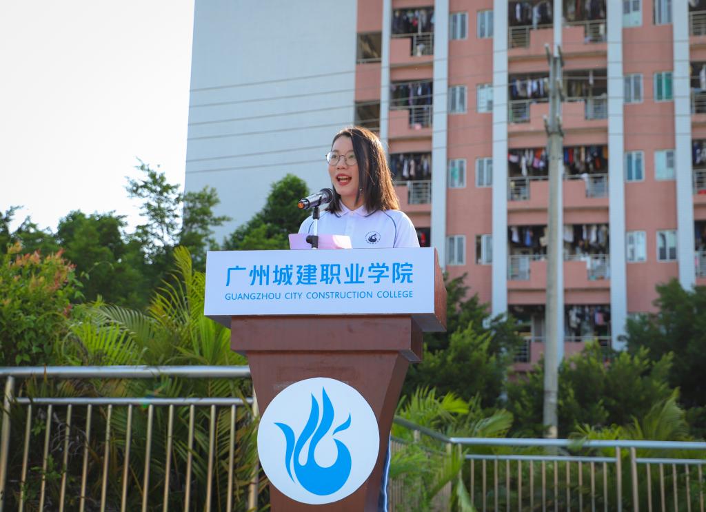 新生代表機電工程學(xué)院鄭璐同學(xué)發(fā)言,她代表全體新生向?qū)W校領(lǐng)導(dǎo)、老師和教官表示敬意,向新生報到和軍訓(xùn)期間忙前忙后的各級團學(xué)干部、新生學(xué)長們表示感謝,并作出承諾:將牢記校訓(xùn),嚴守校規(guī)校紀,勤奮刻苦學(xué)習(xí),講文明懂禮貌,注重團結(jié)協(xié)作,做一個好學(xué)、敬業(yè)、強技的城建人。