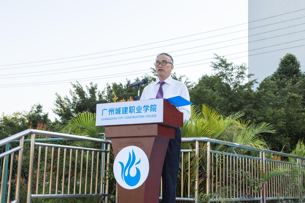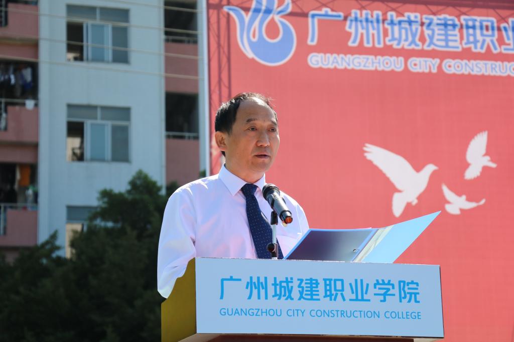 蔣新華校長首先代表學(xué)校全體師生員工向2019級新生加入城建大家庭表示熱烈的歡迎,向辛勤軍訓(xùn)的教官們表示衷心的感謝!他充分肯定了同學(xué)們守紀律、講規(guī)矩、重團隊、求上進的軍訓(xùn)成果,并向大家介紹了近幾年來我校學(xué)生通過辛勤學(xué)習(xí)和拼搏奮斗,在各種競賽中所取得的優(yōu)異成績,以此勉勵廣大新生保持激情和活力,承接光榮使命,在新的學(xué)習(xí)環(huán)境中,創(chuàng)造屬于自己的精彩。