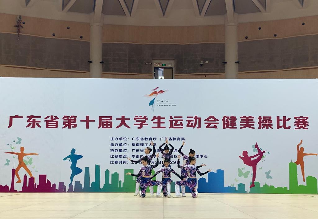 2019年5月23-29日,由廣東省教育廳、廣東省體育局主辦的 “2019年廣東省第十屆大學(xué)生運(yùn)動(dòng)會(huì)健美操比賽”在華南理工大學(xué)(五山校區(qū))海麗體育中心隆重舉行。此次比賽共有68所大學(xué)參賽(共計(jì)1532人),高職院校組(丙組)27所(共計(jì)575人)。我校健美操隊(duì)派出了26名運(yùn)動(dòng)員,參加了四個(gè)項(xiàng)目的比賽。經(jīng)過(guò)激烈角逐,我校參加的所有項(xiàng)目順利進(jìn)入決賽,并獲得了自選有氧舞蹈第二名、自選花球舞蹈啦啦操第三名、自選有氧踏板第四名、自選街舞第八名、團(tuán)體總分第三名的好成績(jī)。