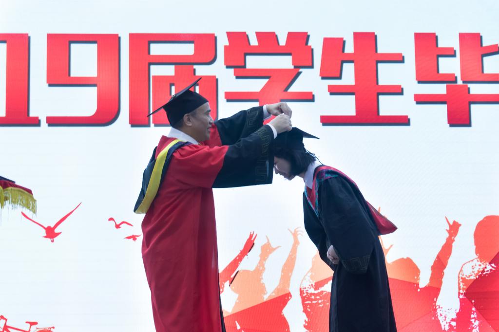6月22日,學(xué)校在會議中心第一報(bào)告廳隆重舉行2019屆學(xué)生畢業(yè)典禮。學(xué)校董事會執(zhí)行董事、校務(wù)管理委員會主任張亞斌,校長蔣新華,精通教育投資有限公司副總經(jīng)理黃偉瑜、于曉光,黨委書記、副校長楊清國,副校長李志強(qiáng)、周暉、王媚莎,黨委副書記魯巖,總會計(jì)師苗紅衛(wèi),校長助理吳銳,各二級學(xué)院院長,各職能部門負(fù)責(zé)人,2019屆優(yōu)秀畢業(yè)生和家長代表等出席了畢業(yè)典禮。畢業(yè)典禮由黨委副書記、副校長張德宜主持。