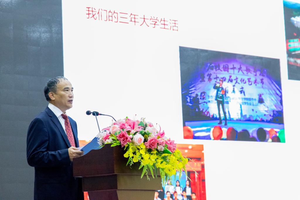 畢業(yè)典禮在藝術(shù)團(tuán)星舞團(tuán)《憧憬未來》的歡快舞蹈中拉開序幕。蔣新華校長致辭,向順利完成學(xué)業(yè)的6013名畢業(yè)生表示祝賀,向精心培養(yǎng)學(xué)生的各位老師表示感謝,向到場的學(xué)生家長表示歡迎。蔣校長充分肯定了2019屆畢業(yè)生在校期間獲得的獎項(xiàng)及榮譽(yù),并希望同學(xué)們,走出校門,勇于面對挑戰(zhàn);走進(jìn)社會,敢于承當(dāng)責(zé)任;走上舞臺,善于博出精彩;走向未來,要懂得感恩,要終身學(xué)習(xí),要善于思考,要不懼挑戰(zhàn)、勇往直前!