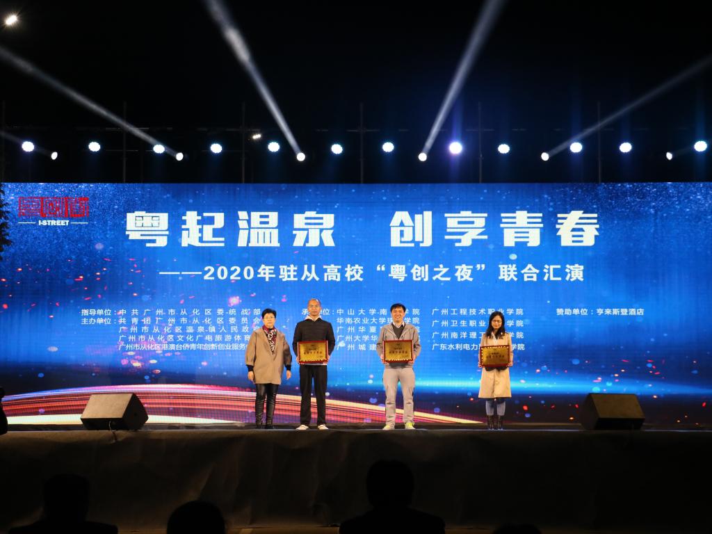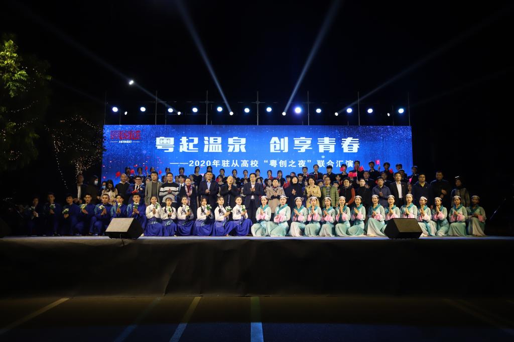 為貫徹落實(shí)關(guān)于推動(dòng)鄉(xiāng)村振興戰(zhàn)略的目標(biāo)要求,搶抓粵港澳大灣區(qū)建設(shè)重大機(jī)遇,推動(dòng)創(chuàng)新創(chuàng)業(yè)發(fā)展,加強(qiáng)校地共建,聯(lián)動(dòng)駐從高校共創(chuàng)共建共享粵創(chuàng)街品牌。12月26日晚,由共青團(tuán)廣州市從化區(qū)委員會(huì)、廣州市從化區(qū)溫泉鎮(zhèn)人民政府、廣州市從化區(qū)文化廣電旅游體育局、廣州市從化區(qū)港澳臺(tái)僑青年創(chuàng)新創(chuàng)業(yè)服務(wù)中心主辦,從化九所高校承辦,中共廣州市從化區(qū)委統(tǒng)戰(zhàn)部指導(dǎo)的“粵創(chuàng)之夜”元旦晚會(huì)順利舉行。從化區(qū)委副書記、區(qū)長(zhǎng)劉粽會(huì),從化區(qū)委常委、區(qū)委統(tǒng)戰(zhàn)部部長(zhǎng)孫柱,從化區(qū)政協(xié)副主席蔣瓊芳,從化區(qū)直屬系統(tǒng)的領(lǐng)導(dǎo)嘉賓及駐從高校廣大師生朋友們出席參加了本次“粵創(chuàng)之夜”活動(dòng)。