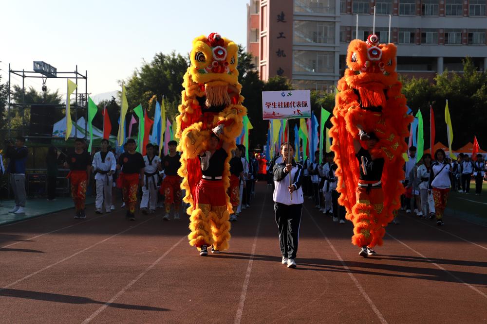 開幕式在激昂的《運(yùn)動員進(jìn)行曲》中拉開序幕,各方陣依次入場。首先入場的是國旗護(hù)衛(wèi)隊(duì),隊(duì)員們踏著整齊有力的步伐,以飽滿的精神、整齊的軍姿,成為運(yùn)動場上一道亮麗的風(fēng)景線。緊跟國旗護(hù)衛(wèi)隊(duì)的是各具特色的學(xué)院代表方陣和學(xué)生社團(tuán)代表方陣。燦爛的笑容洋溢在所有師生的臉上,他們喊著激昂的口號,展示著意氣風(fēng)發(fā)、斗志昂揚(yáng)的精神風(fēng)貌。