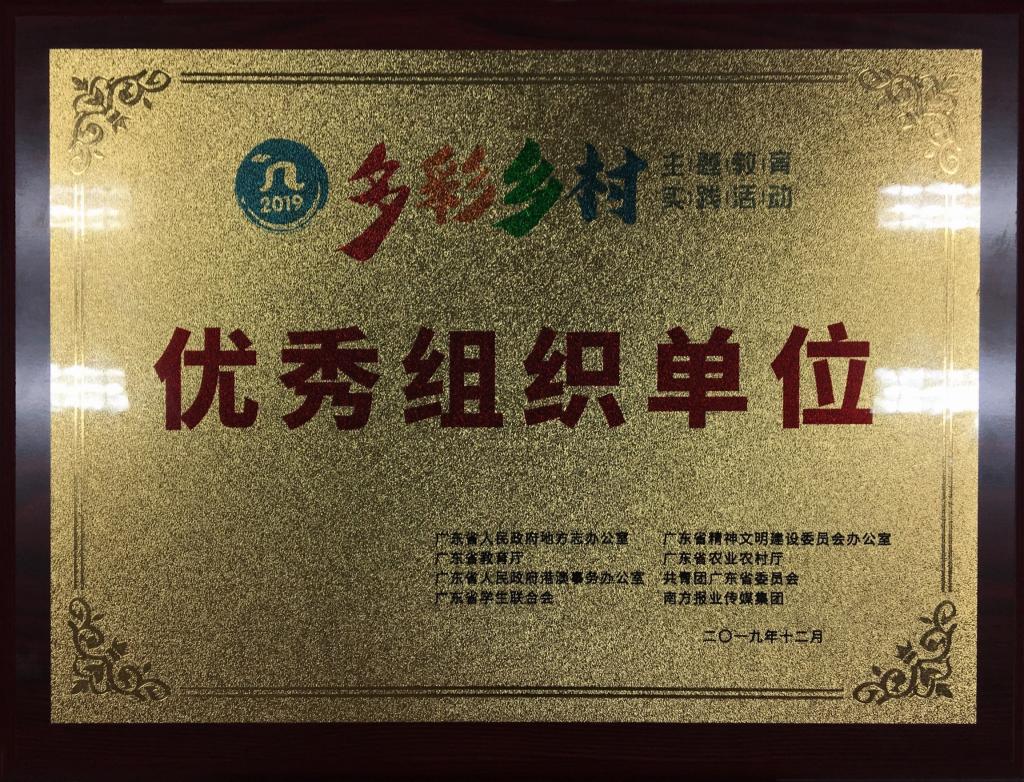 12月19日上午,由省地方志辦、省文明辦、省教育廳、省農(nóng)業(yè)農(nóng)村廳、省港澳辦、省團委、省學(xué)聯(lián)、南方報業(yè)傳媒集團主辦,廣東省鄉(xiāng)村振興服務(wù)中心、南方農(nóng)村報承辦的2019年多彩鄉(xiāng)村主題教育實踐活動總結(jié)會在廣州市南方傳媒大廈舉行。會議全面總結(jié)了本次活動的開展情況,展示了部分優(yōu)秀成果,并宣讀了表彰決定。我校繼2018年后再次榮獲“優(yōu)秀組織單位”稱號。