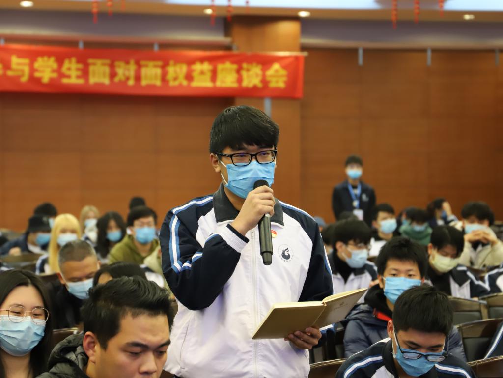 12月22日晚,由校團(tuán)委主辦、校學(xué)生會承辦的“領(lǐng)導(dǎo)與學(xué)生面對面權(quán)益座談會”在人文藝術(shù)樓四樓報告廳舉行。黨委副書記、副校長張德宜,有關(guān)職能部門負(fù)責(zé)人和部分教師,學(xué)校主要外包單位負(fù)責(zé)人,第五次學(xué)代會學(xué)生代表及各二級學(xué)院學(xué)生代表出席了會議。