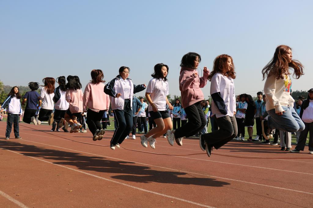 趣味項目同樣令人期待,拔河比賽的運動員們眾志成城、萬眾一心,雙方都用盡全力將繩索拔向自己的方向;賽龍舟比賽中,運動員排成一列,手抬后方隊員大腿形成龍舟,喊著口號一步步前進(jìn),即使中途遇到隊形斷開也并不影響大家比賽的積極性;跳大繩等項目競相開展,碧空如洗的天空下,師生們在歡聲笑語中賽出了趣味,賽出了朝氣,賽出了活力。