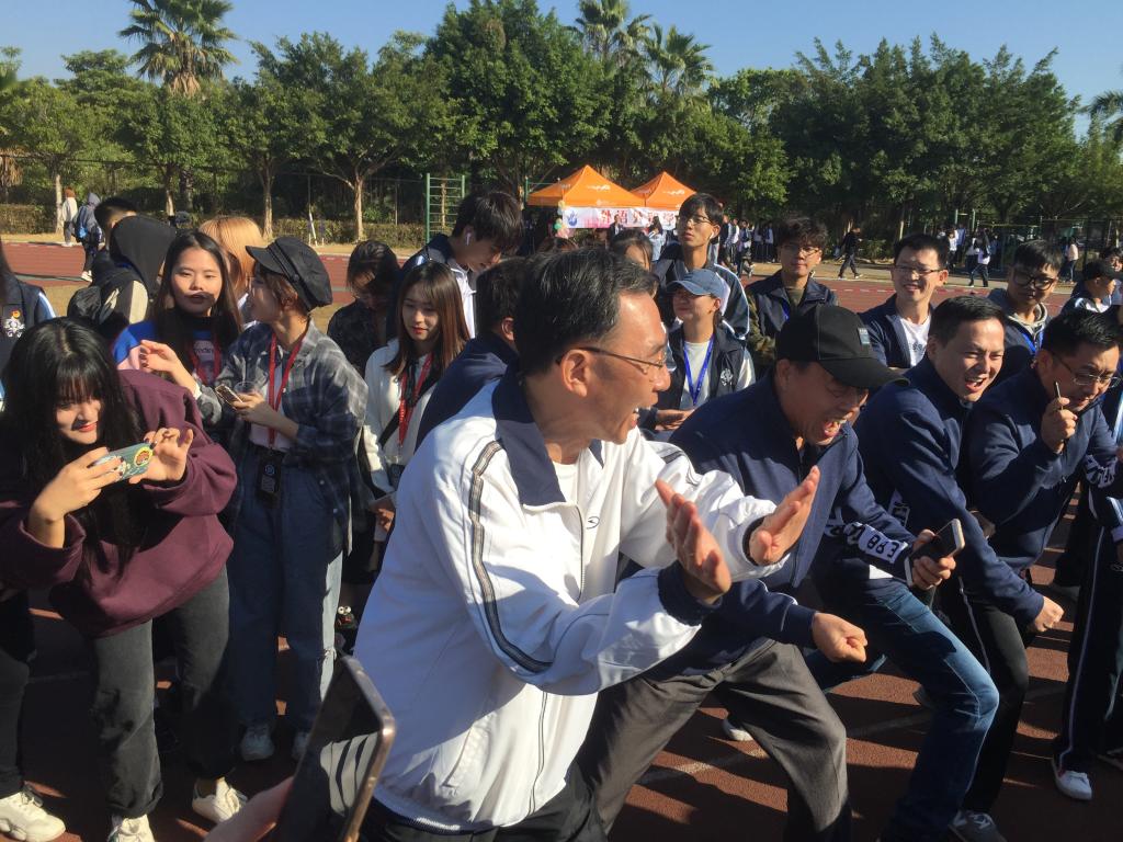 學(xué)校董事會執(zhí)行董事、校務(wù)管理委員會主任張亞斌在現(xiàn)場為老師們加油