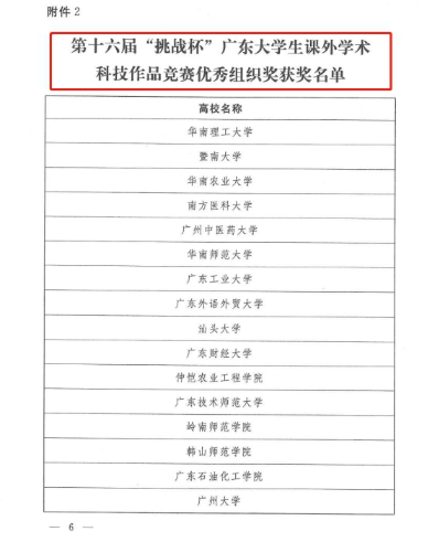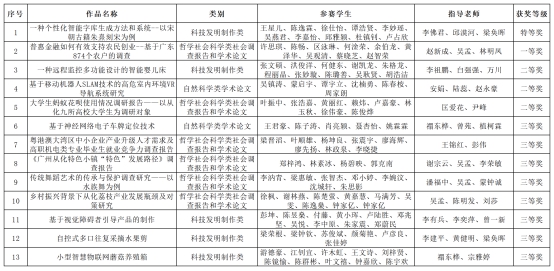 近日,團(tuán)省委公布《第十六屆“挑戰(zhàn)杯”廣東大學(xué)生課外學(xué)術(shù)科技作品競(jìng)賽獲獎(jiǎng)名單的通知》(團(tuán)粵聯(lián)發(fā)〔2021〕34號(hào)),我校首次榮獲“優(yōu)秀組織獎(jiǎng)”(全省民辦高職院校唯一),參賽作品斬獲特等獎(jiǎng)1項(xiàng)、一等獎(jiǎng)1項(xiàng)、二等獎(jiǎng)3項(xiàng)、三等獎(jiǎng)8項(xiàng)的優(yōu)異成績(jī),獲獎(jiǎng)數(shù)量為我校歷年最多。