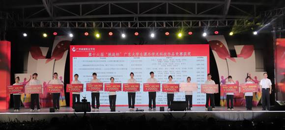 學(xué)校黨委副書記魯巖為“第十六屆‘挑戰(zhàn)杯’廣東大學(xué)生課外學(xué)術(shù)科技作品競賽”獲獎?wù)哳C獎