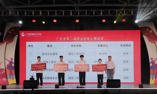 學(xué)校黨委副書記、副校長張德宜為“廣東省第二屆職業(yè)技能大賽”獲獎?wù)哳C獎