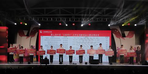 校長蔣新華為“第七屆中國‘互聯(lián)網(wǎng)+’大學(xué)生創(chuàng)新創(chuàng)業(yè)大賽國賽”獲獎?wù)哳C獎