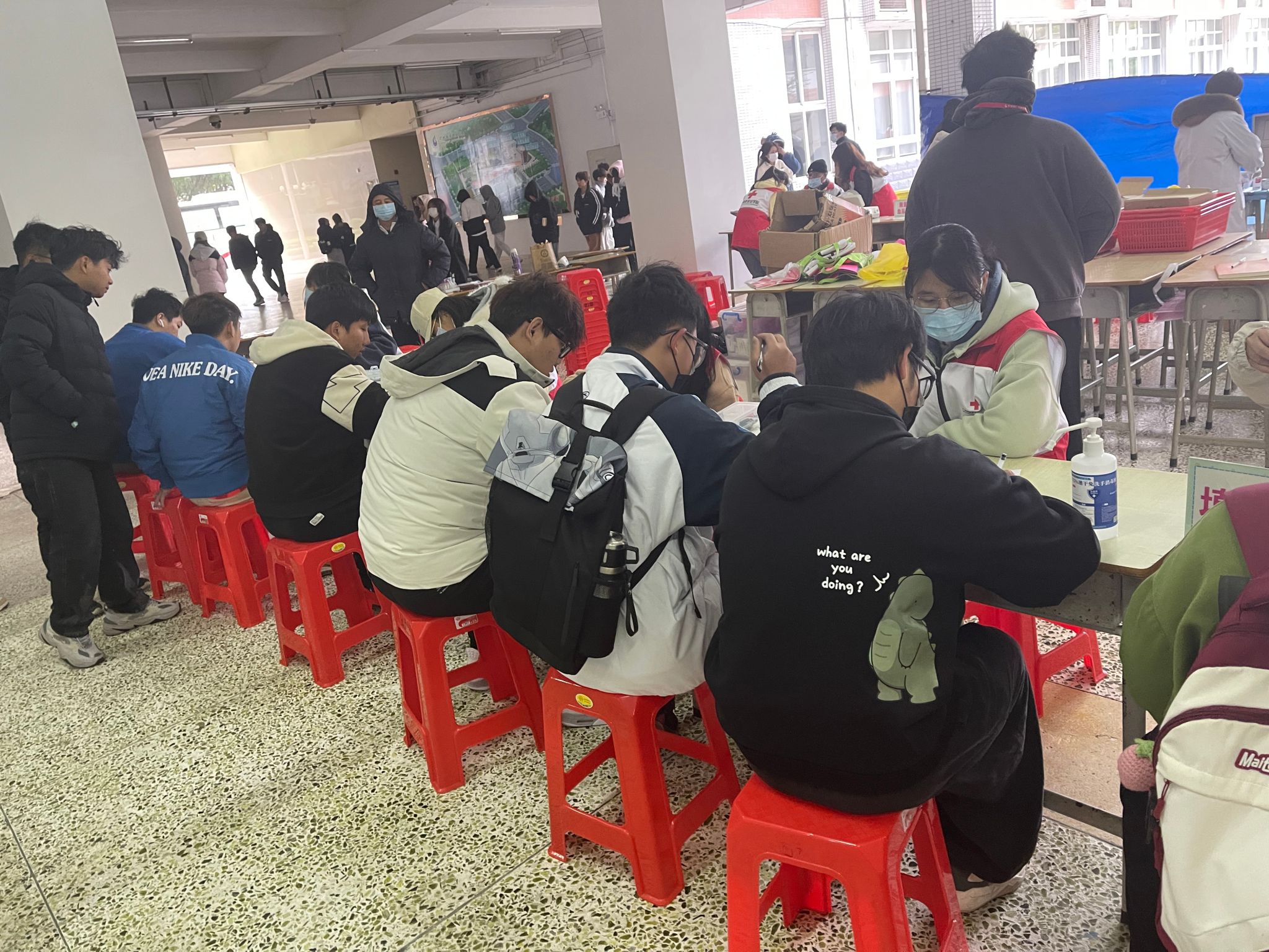 活動(dòng)現(xiàn)場(chǎng),志愿者們有序?yàn)閹熒v解獻(xiàn)血知識(shí)、介紹獻(xiàn)血注意事項(xiàng)、指導(dǎo)表格填寫(xiě)等工作;師生依次進(jìn)行信息登記、血液類(lèi)型檢驗(yàn)、靜脈采血等環(huán)節(jié)。