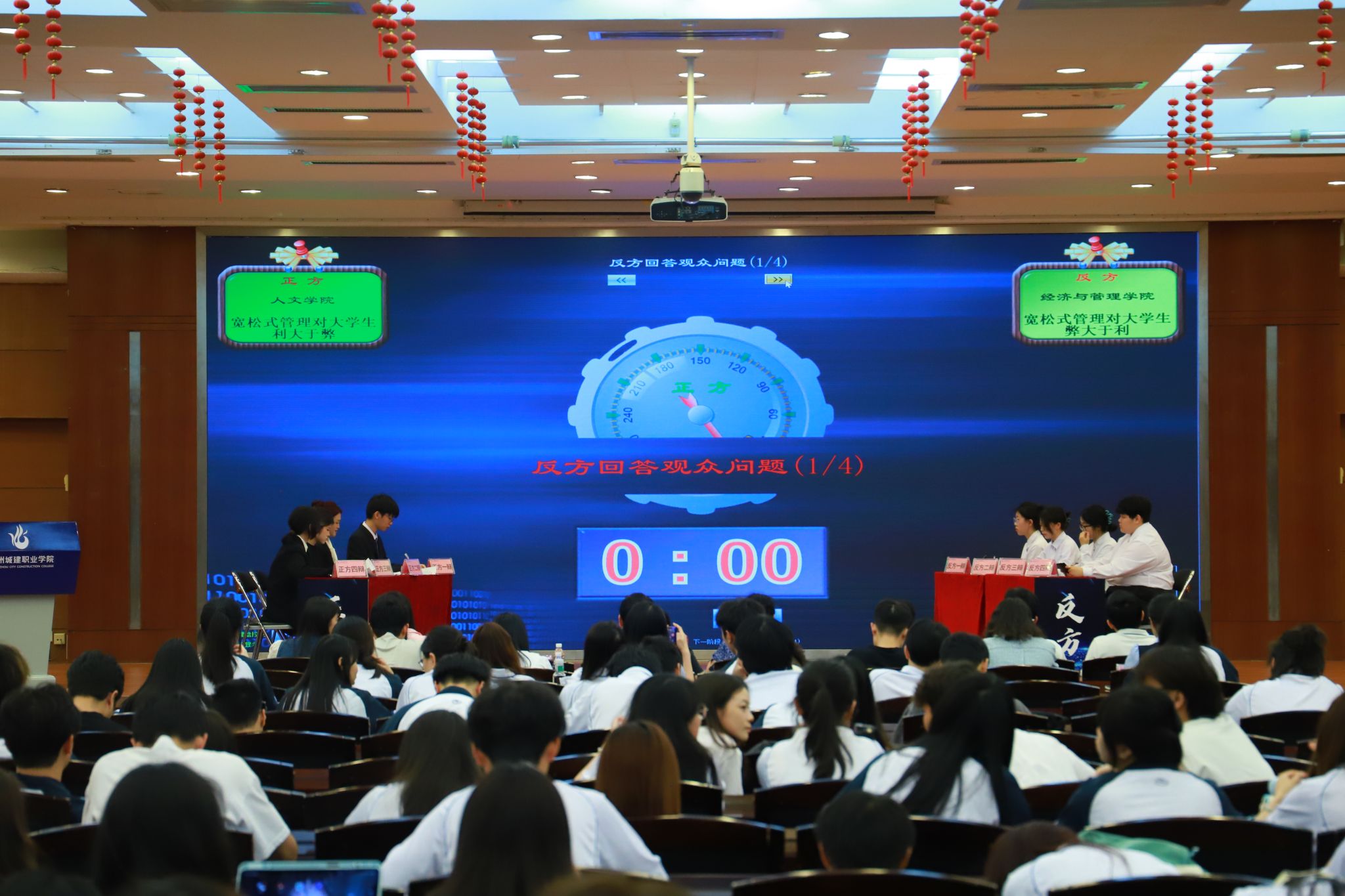 雙方辯手憑借自己獨(dú)特的見(jiàn)解向評(píng)委和觀眾闡述自己的立場(chǎng),展現(xiàn)出了城建學(xué)子卓越的思維能力和出色的表達(dá)能力,引發(fā)評(píng)委和觀眾的深思。最終經(jīng)濟(jì)與管理學(xué)院代表隊(duì)贏得首場(chǎng)比賽勝利。