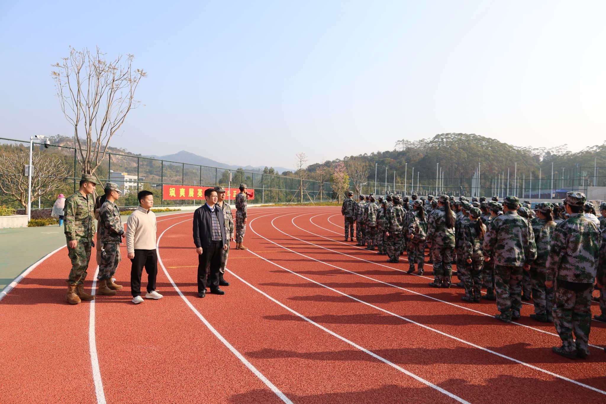 1月8日上午,校長助理孔練光來到清遠校區(qū)新生軍訓場地,深入一線檢查指導工作并慰問新生輔導員、承訓教官及全體2024級參訓學生,學生處、團委、武裝部相關負責人陪同參加。