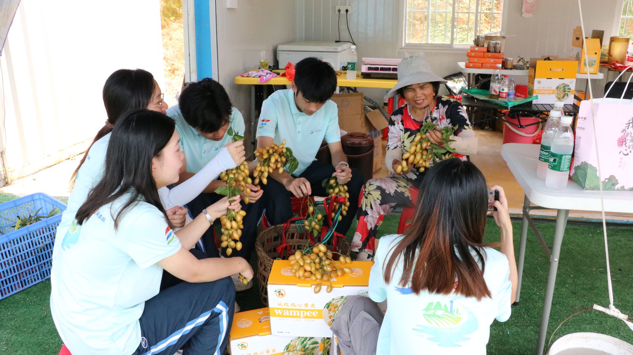 品牌與渠道雙升級:“田野新研隊”在廣州從化黃場村,協(xié)助舉辦黃皮文化節(jié),制作特產(chǎn)宣傳片,并搭建“黃場一村一品”微信小程序,推動全村58萬斤黃皮線上銷售,村民人均增收約5000元;“電商助‘荔’”突擊隊在從化羅洞工匠小鎮(zhèn),創(chuàng)新“非遺+荔枝”模式,開展2場電商直播(累計觀看超2000人次),拓寬荔枝銷路;“村風(fēng)得意”實(shí)踐隊為梅州長布鎮(zhèn)靈芝、夏威夷果設(shè)計“梅小布”系列IP與文創(chuàng)包裝,提升農(nóng)產(chǎn)品品牌調(diào)性。