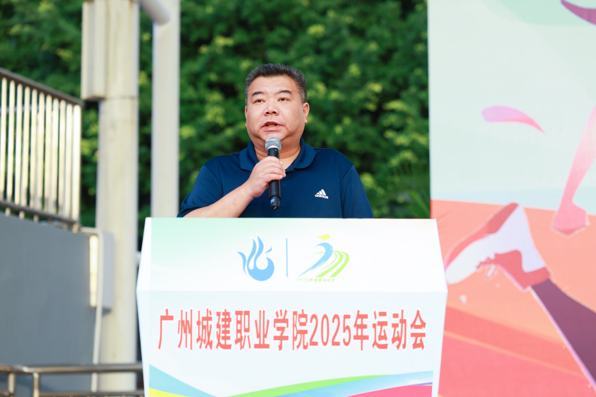 副校長(zhǎng)、黨委副書(shū)記、體育運(yùn)動(dòng)委員會(huì)主任張德宜致開(kāi)幕辭。他代表學(xué)校體育運(yùn)動(dòng)委員會(huì),向全體運(yùn)動(dòng)員、裁判員及工作人員致以最誠(chéng)摯的問(wèn)候,向?yàn)榛I備本次運(yùn)動(dòng)會(huì)付出辛勤努力的師生團(tuán)隊(duì)表示衷心的感謝,并強(qiáng)調(diào)了體育在促進(jìn)人的全面發(fā)展與構(gòu)筑校園活力中的重要作用。他指出,學(xué)校高度重視體育工作,在過(guò)去的一年里,斬獲多項(xiàng)國(guó)家級(jí)、省級(jí)賽事,在全校范圍內(nèi)點(diǎn)燃了運(yùn)動(dòng)熱情。面向全體參與者,他提出了三點(diǎn)殷切期望:勉勵(lì)運(yùn)動(dòng)員弘揚(yáng)”更快、更高、更強(qiáng)——更團(tuán)結(jié)”的奧林匹克精神;要求裁判員與工作人員秉持專業(yè)嚴(yán)謹(jǐn)?shù)膽B(tài)度,確保賽事公正有序;呼吁同學(xué)們展現(xiàn)集體主義精神與文明觀賽風(fēng)尚,共同營(yíng)造熱烈和諧的育人氛圍。最后,他勉勵(lì)師生踐行第十五屆全運(yùn)會(huì)“全民全運(yùn)、同心同行”的理念,在賽場(chǎng)上書(shū)寫(xiě)青春華章,在奮斗中彰顯城建風(fēng)采,為學(xué)校高質(zhì)量發(fā)展貢獻(xiàn)青春力量!