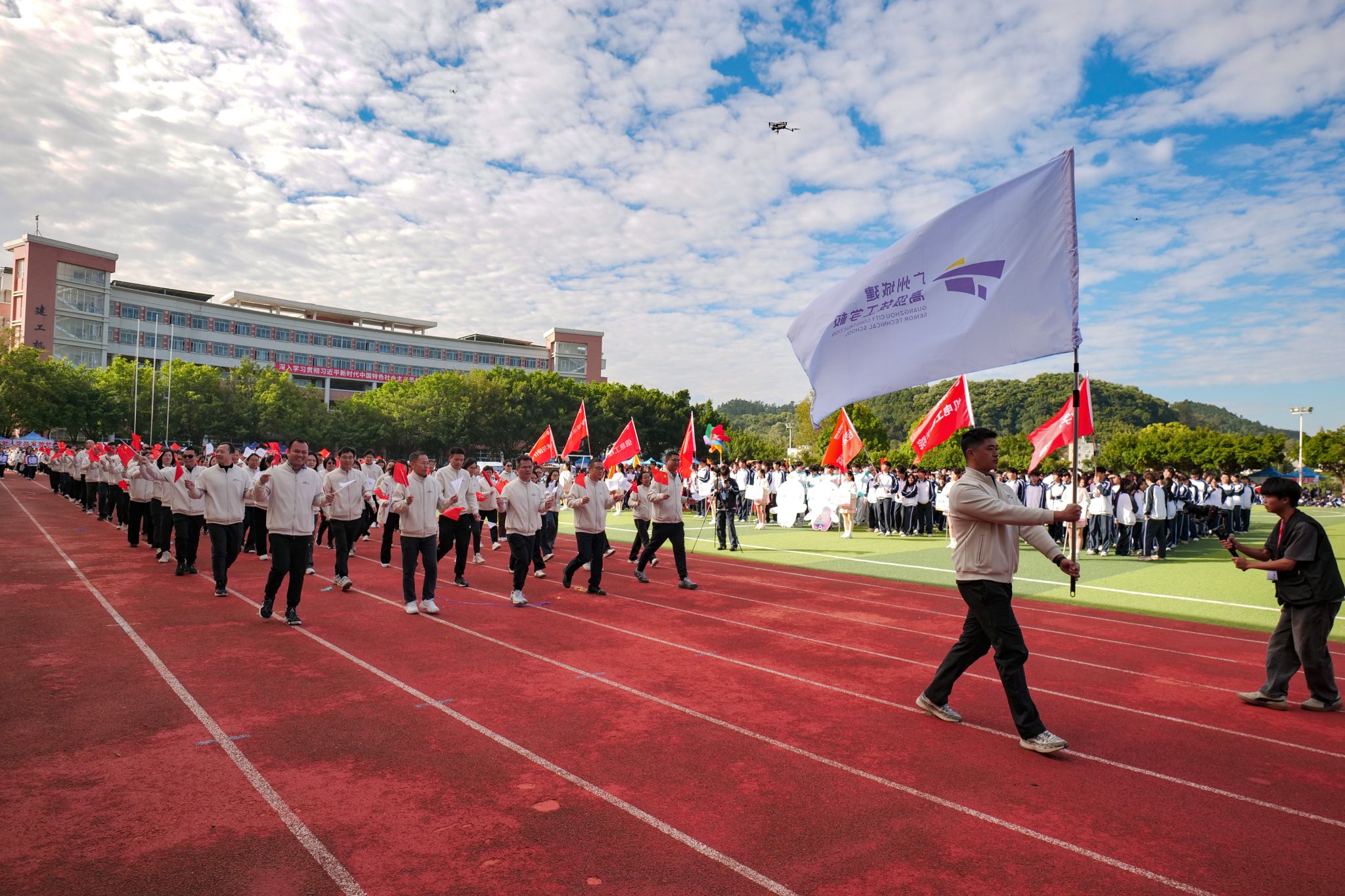 11月21日至22日,我校廣州校區(qū)2025年運(yùn)動(dòng)會(huì)在三區(qū)田徑運(yùn)動(dòng)場(chǎng)舉行。學(xué)校董事會(huì)執(zhí)行董事、校務(wù)管理委員會(huì)主任張亞斌,黨委書(shū)記黃學(xué)茭,校長(zhǎng)李國(guó)年等領(lǐng)導(dǎo)出席開(kāi)幕式,廣州校區(qū)全校師生共同參與。開(kāi)幕式由校長(zhǎng)助理張雙主持。