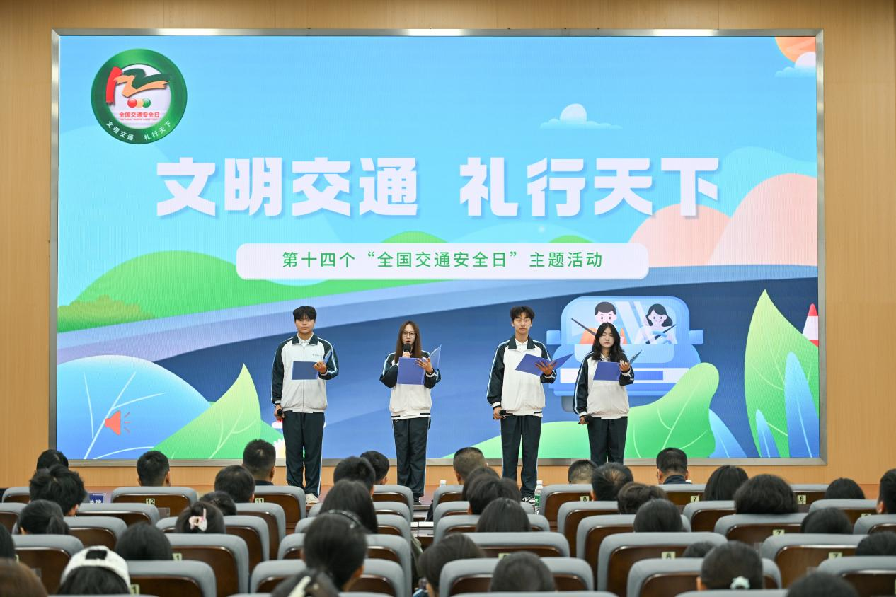 我校團(tuán)委選送的主題朗誦作品《平安之路生命之諾》,深情表達(dá)了規(guī)則與生命之間的深刻聯(lián)結(jié),展現(xiàn)了城建學(xué)子的責(zé)任感。最后,警、校代表共同合唱的《早點(diǎn)走,慢慢開》,以溫暖旋律傳遞出平安出行的樸素智慧。