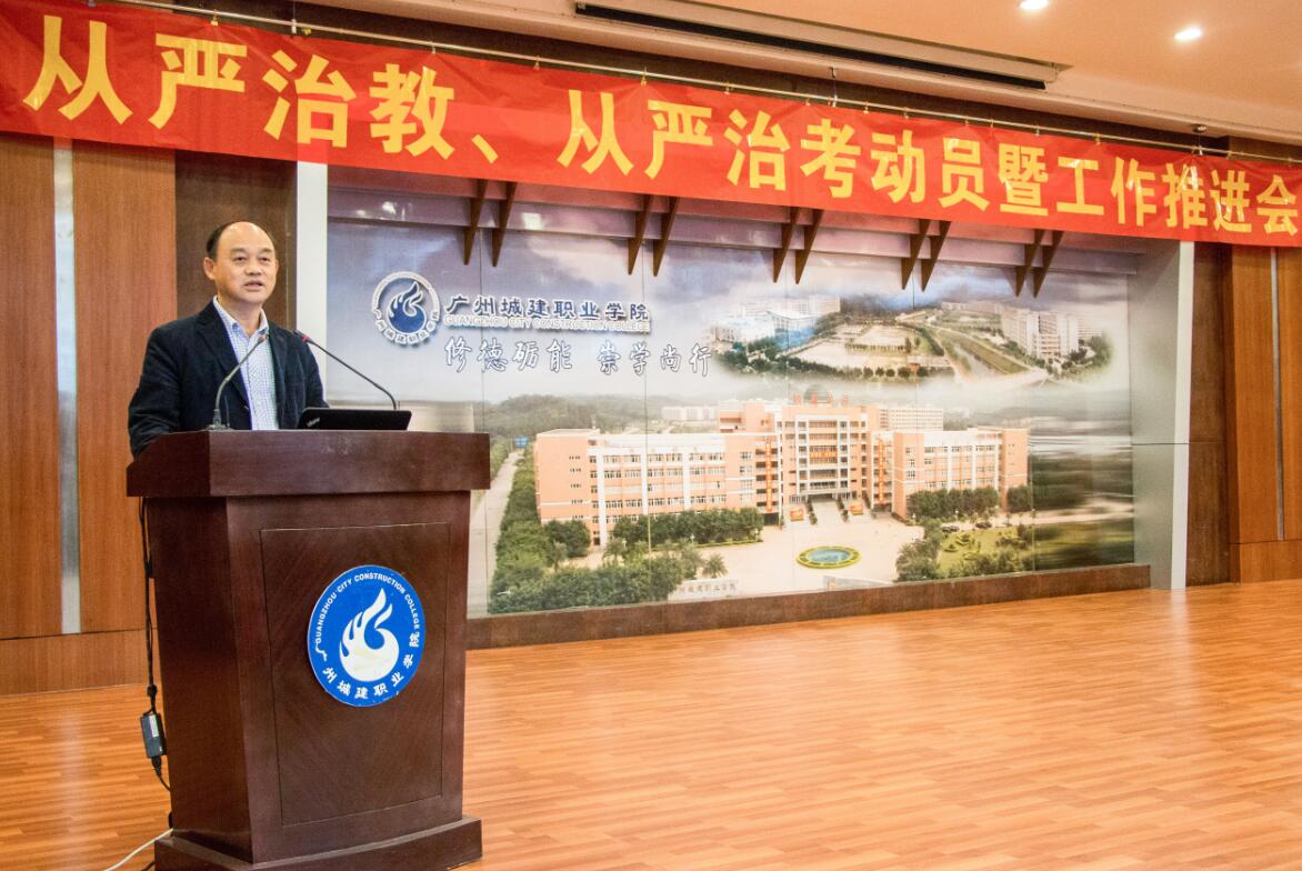為檢驗從嚴(yán)治教的成效,確保從嚴(yán)治考不走過場,學(xué)校于12月22日下午在人文藝術(shù)樓四樓報告廳召開“從嚴(yán)治教、從嚴(yán)治考動員暨工作推進(jìn)會”,學(xué)校領(lǐng)導(dǎo)及職能部門負(fù)責(zé)人、二級學(xué)院院領(lǐng)導(dǎo)和教研室正副主任、全體骨干教師及輔導(dǎo)員近400人參加會議。楊清國副校長主持會議。