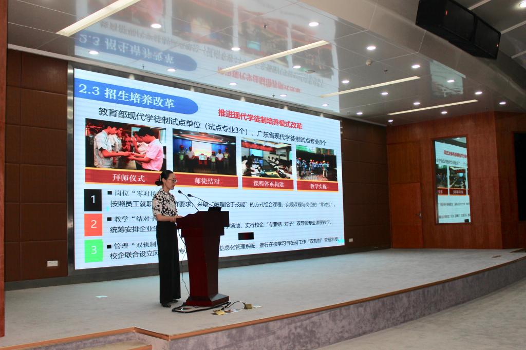周暉副校長作了主題為《規(guī)范管理謀突破 聚焦改革促發(fā)展 聚力創(chuàng)新求質(zhì)量》的學(xué)年教學(xué)工作報告。她對2018-2019學(xué)年學(xué)校教學(xué)工作作了總結(jié)分析;同時解讀了“職教20條”的重要意義和新理念新提法,提出聚力“四抓”做好下一步教學(xué)工作的思路;最后分析了當(dāng)前學(xué)校教育教學(xué)工作面臨的問題、采取的措施和開展的工作重點(diǎn),對新時期激發(fā)教學(xué)研究活力擬采取的新政策進(jìn)行了項目動員。