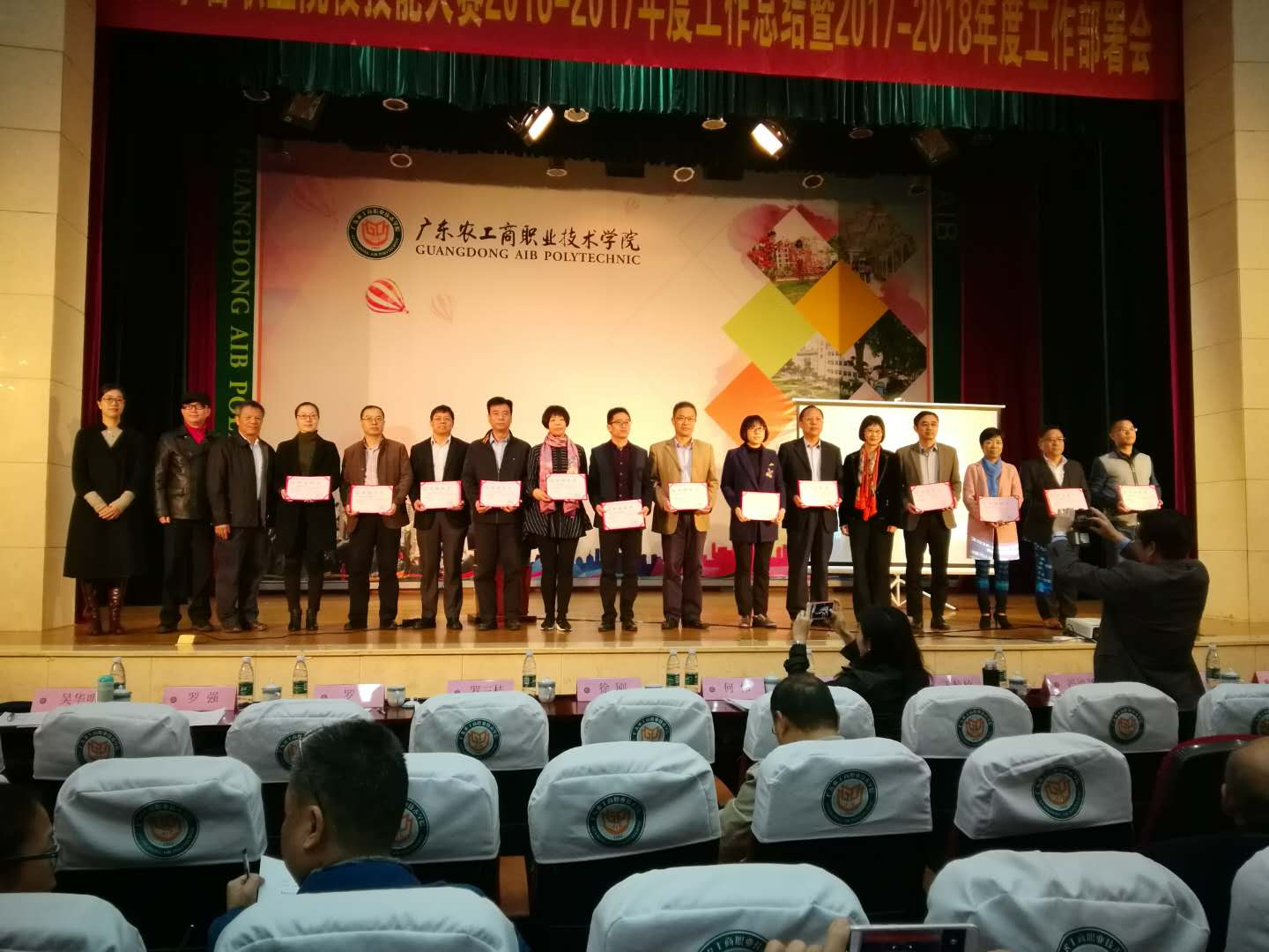 11月23日上午,廣東省職業(yè)院校技能大賽2016-2017年度工作總結(jié)暨2017-2018年度工作部署會(huì)在廣東農(nóng)工商職業(yè)技術(shù)學(xué)院學(xué)術(shù)報(bào)告廳舉行,我校榮獲2016-2017年度廣東省職業(yè)院校技能大賽“特殊貢獻(xiàn)獎(jiǎng)”。廣東省教育廳職業(yè)教育與終身教育處調(diào)研員吳艷玲、副處長(zhǎng)吳華明,高職賽指委,地市教育局及職業(yè)院校代表等參加會(huì)議。副校長(zhǎng)周暉代表學(xué)校出席會(huì)議。
