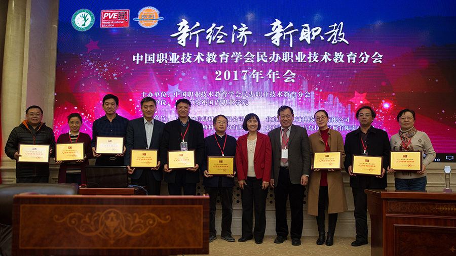 12月10日,主題為“新經(jīng)濟(jì)、新職教——民辦高職院校人才培養(yǎng)模式改革與創(chuàng)新”的中國職業(yè)技術(shù)教育學(xué)會(huì)民辦職業(yè)技術(shù)教育分會(huì)2017年年會(huì)在上海工商外國語職業(yè)學(xué)院召開,副校長周暉代表學(xué)校參會(huì)并上臺(tái)領(lǐng)取“2017年度民辦職業(yè)院校人才培養(yǎng)創(chuàng)新獎(jiǎng)”牌匾。