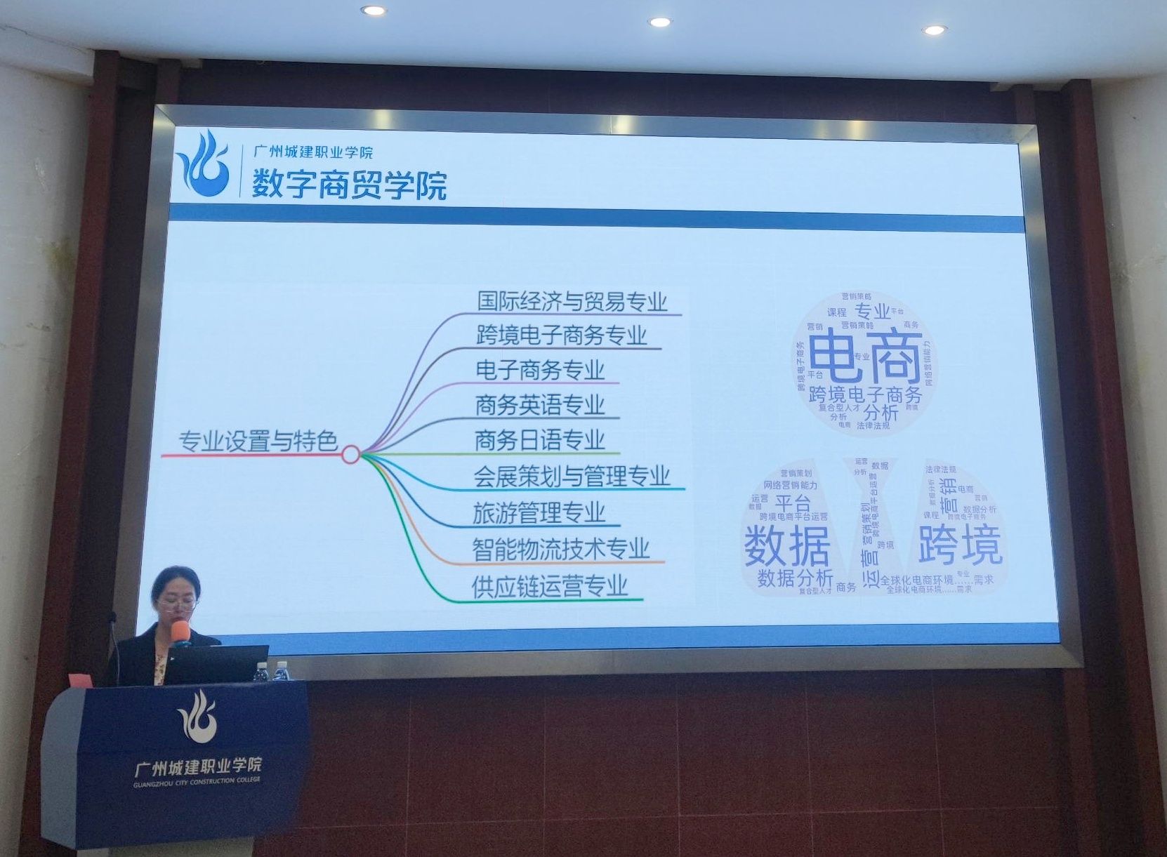 數(shù)字商貿(mào)學(xué)院副院長袁其玲以《產(chǎn)教融合背景下數(shù)字商貿(mào)"虛實協(xié)同"實訓(xùn)平臺建設(shè)》為題,結(jié)合元基建數(shù)字場景技術(shù),介紹了平臺的設(shè)計理念、實施路徑及取得的成效,強(qiáng)調(diào)虛實結(jié)合在提升學(xué)生實戰(zhàn)能力中的重要作用,為其他學(xué)院提供了寶貴經(jīng)驗。