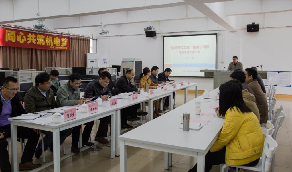 23日,機(jī)電工程學(xué)院院長(zhǎng)林勇及各子項(xiàng)目負(fù)責(zé)人分別就2016年以來學(xué)院創(chuàng)強(qiáng)“2235”工程項(xiàng)目建設(shè)情況、建設(shè)成效及存在問題進(jìn)行了匯報(bào)。