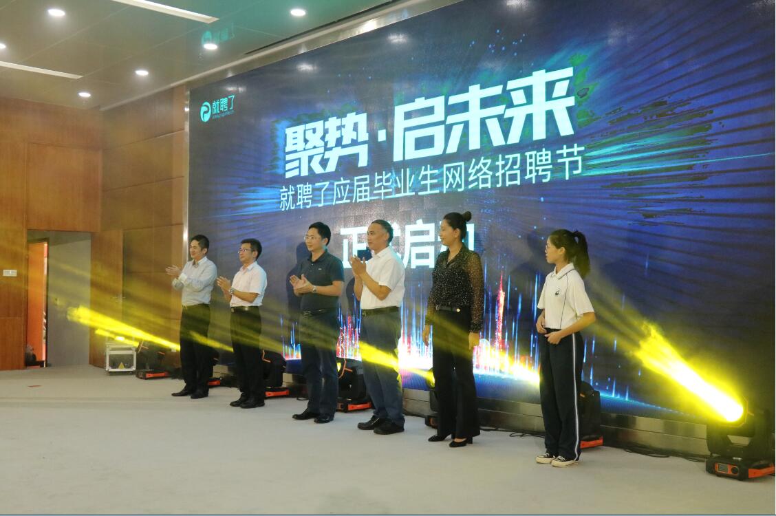 在高校和企業(yè)代表們的見證下,政校企領(lǐng)導(dǎo)和學(xué)生代表一起啟動“就聘了”網(wǎng)絡(luò)招聘節(jié)。