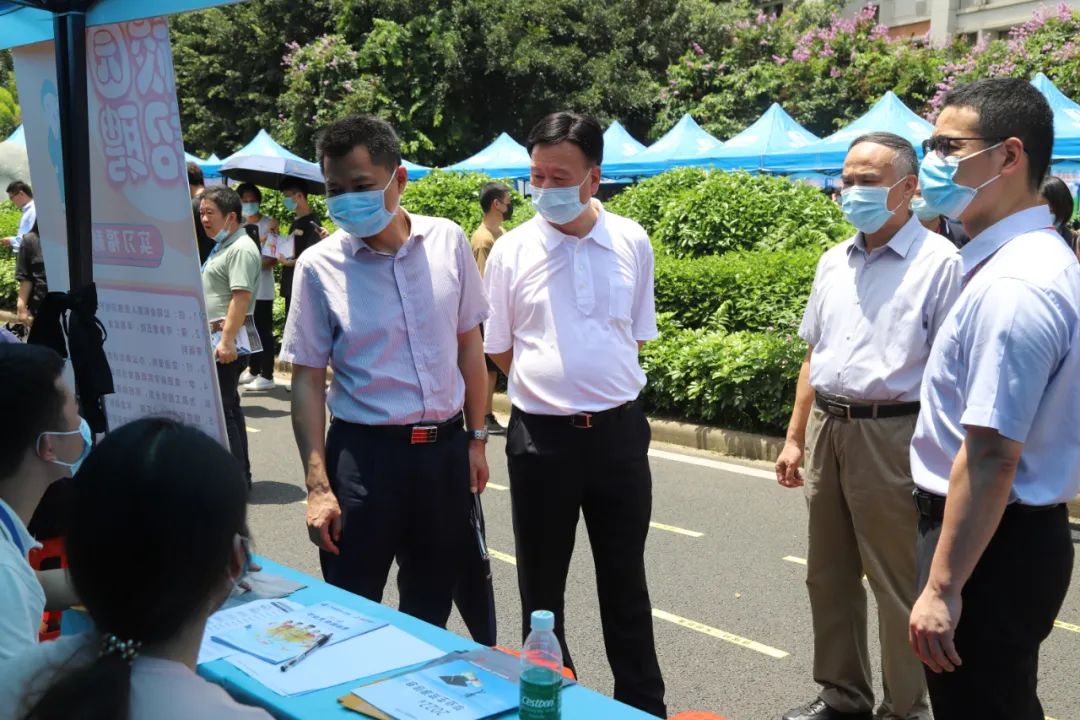 6月23日,由廣東省教育廳主辦、我校承辦的廣東省2022屆普通高校畢業(yè)生系列供需見面活動從化地區(qū)高職高專專場在信工財經(jīng)樓前廣場舉行。廣東省教育廳學(xué)生就業(yè)創(chuàng)業(yè)處處長周昭國帶領(lǐng)督導(dǎo)專家到場指導(dǎo)工作,學(xué)校董事會執(zhí)行董事、校管會主任張亞斌,校長蔣新華、黨委書記黃學(xué)茭等陪同巡察校園招聘會現(xiàn)場情況并深入企業(yè)了解招聘情況。