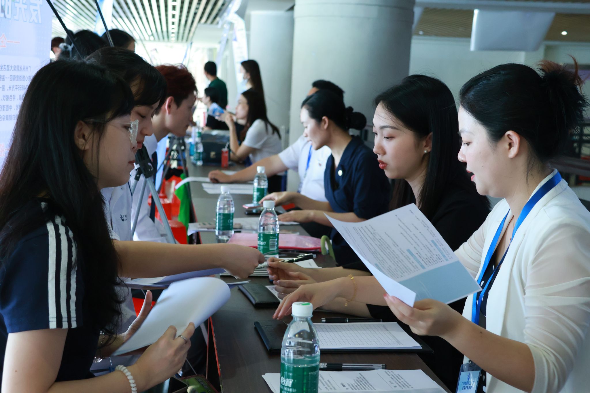 供需對接活動現(xiàn)場人潮涌動、氛圍融洽,學(xué)生來回穿梭投遞簡歷,積極表達(dá)參與意向并接受企業(yè)人員面試;企業(yè)人員認(rèn)真對待學(xué)生需求,耐心解答疑問。
