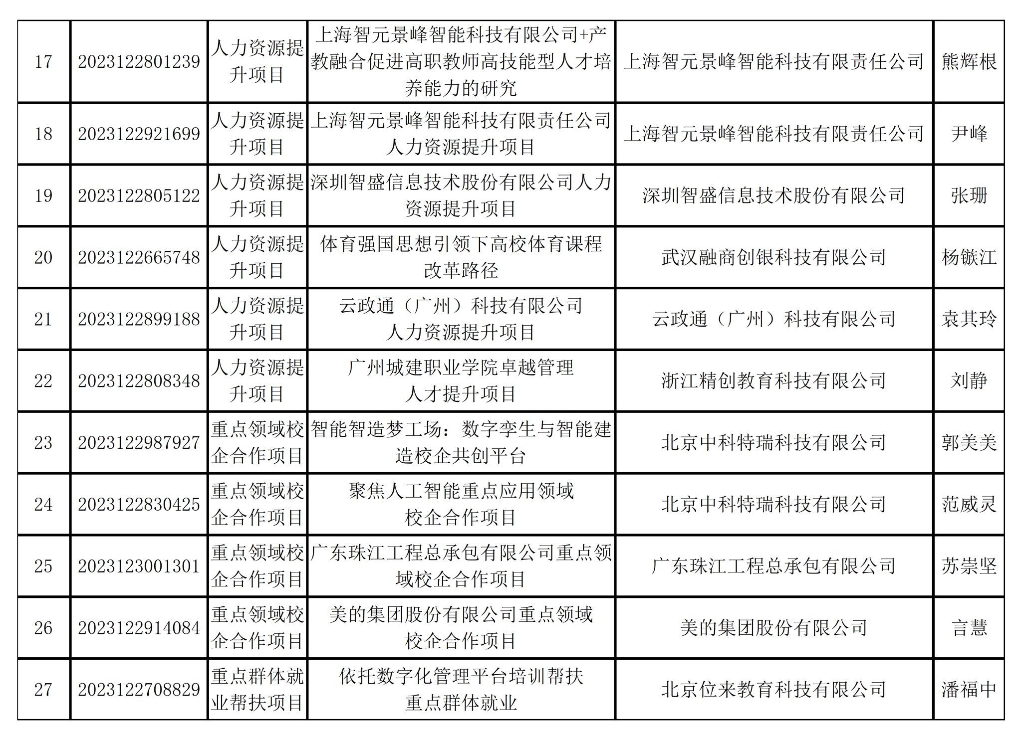 我校此次獲批立項(xiàng)的27個(gè)項(xiàng)目分為定向人才培養(yǎng)培訓(xùn)、就業(yè)實(shí)習(xí)基地、重點(diǎn)群體就業(yè)幫扶、重點(diǎn)領(lǐng)域校企合作和人力資源提升五個(gè)大類,涉及信息通訊與互聯(lián)網(wǎng)、科技服務(wù)、裝備制造、建筑地產(chǎn)、教育、金融等多個(gè)行業(yè)。