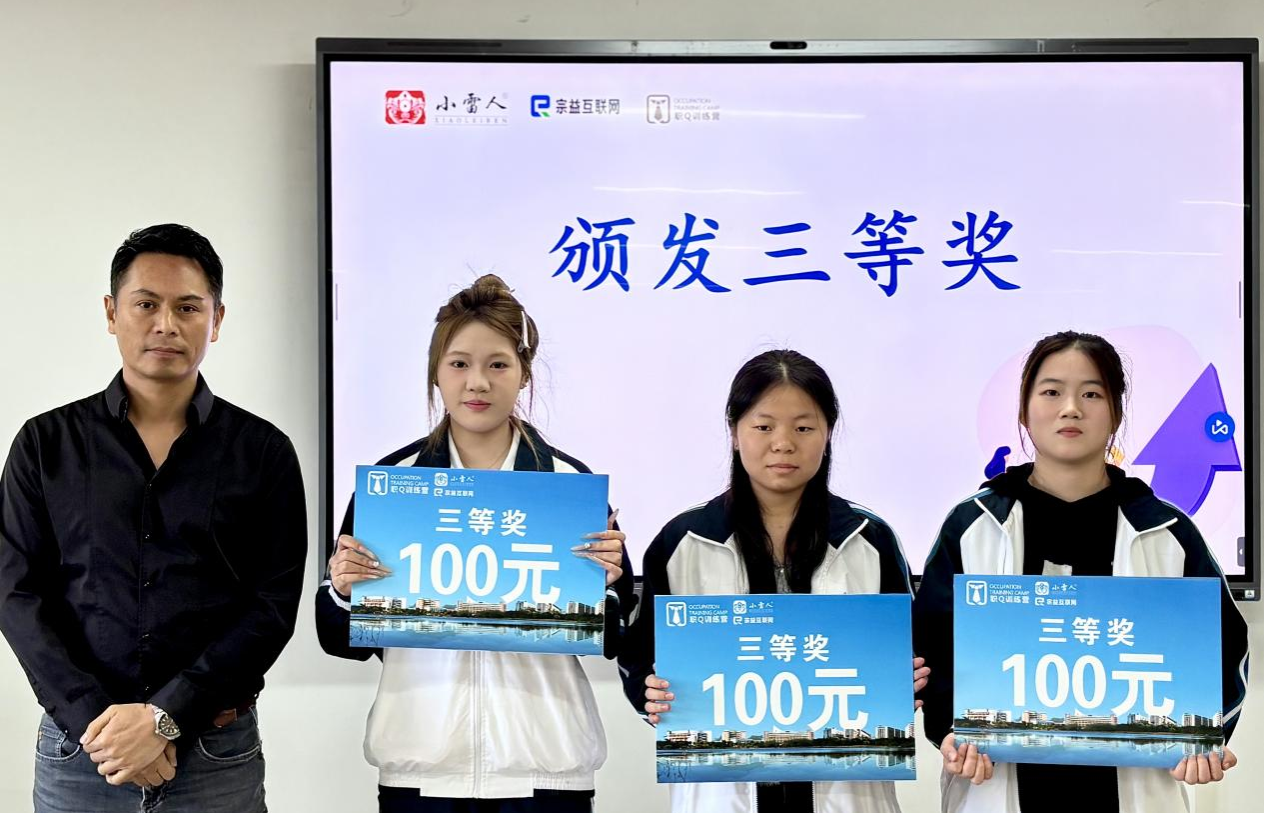 11月14日,學(xué)校聯(lián)合廣州宗益互聯(lián)網(wǎng)科技有限公司在清遠(yuǎn)校區(qū)圖書館706多媒體宣講室舉辦“職Q訓(xùn)練營”職業(yè)能力拓展活動結(jié)營儀式,學(xué)校副校長、黨委副書記張德宜,數(shù)字商貿(mào)學(xué)院院長顏漢軍、學(xué)生就業(yè)創(chuàng)業(yè)處處長潘福中,廣州宗益互聯(lián)網(wǎng)科技有限公司行政總監(jiān)胡等毅,運(yùn)營總監(jiān)呂濤等領(lǐng)導(dǎo)嘉賓出席活動。