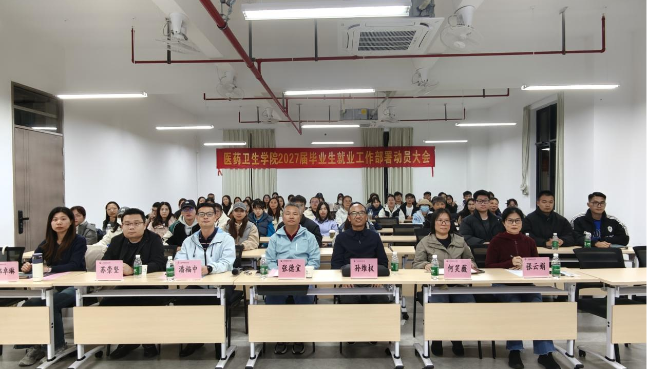 11月18日晚,學(xué)校在清遠(yuǎn)校區(qū)圖書館706多功能宣講室召開醫(yī)藥衛(wèi)生學(xué)院2027屆畢業(yè)生就業(yè)工作部署動員大會。學(xué)校副校長、黨委副書記張德宜,學(xué)生就業(yè)創(chuàng)業(yè)處處長潘福中,科技處(校企合作辦)副處長蘇崇堅,醫(yī)藥衛(wèi)生學(xué)院全體教職工及學(xué)生就業(yè)創(chuàng)業(yè)處相關(guān)人員參加會議。