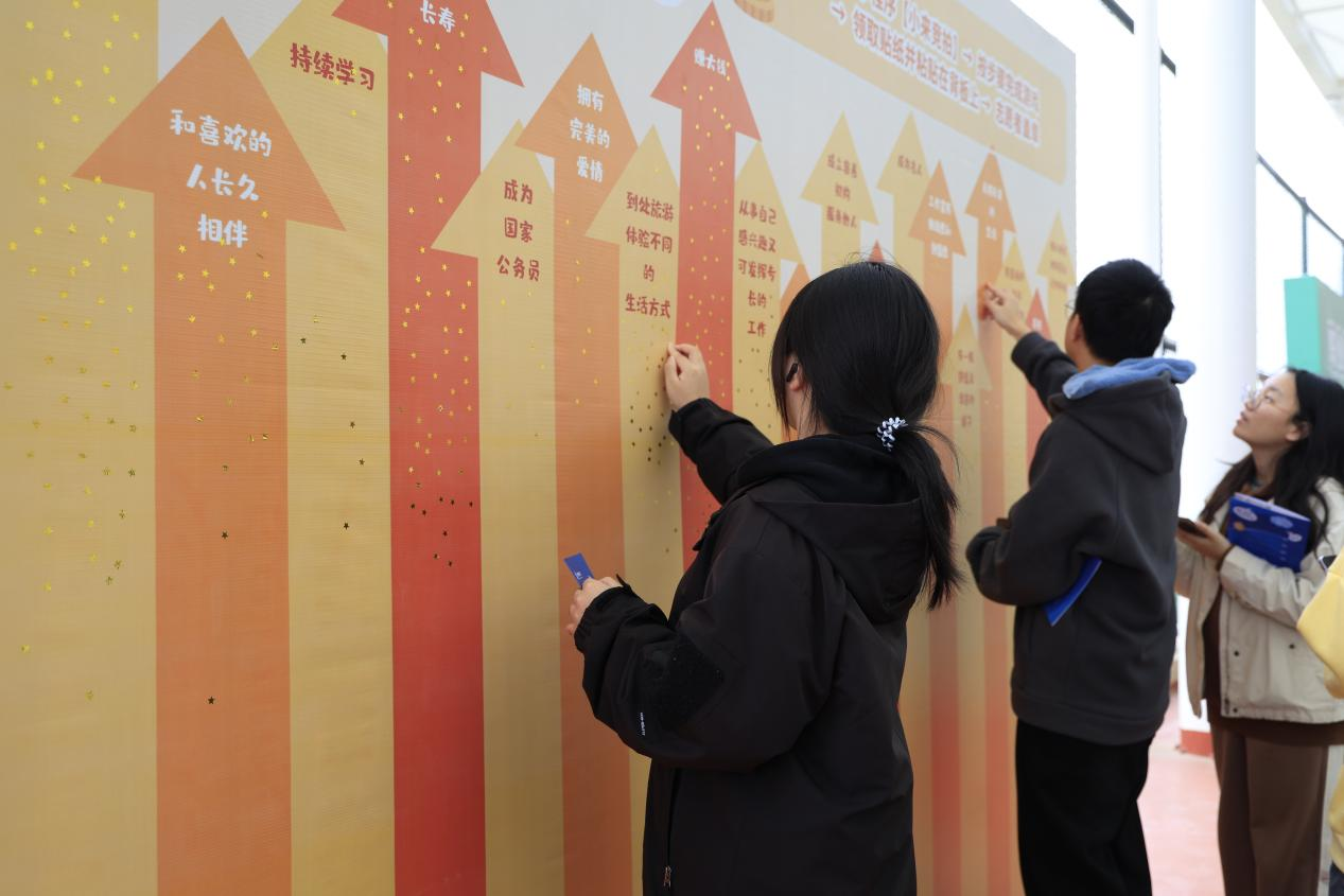 風(fēng)雨籃球場內(nèi),15個體驗展位沿場地有序排布,構(gòu)建起“自我探索—職場模擬—職業(yè)認知—未來規(guī)劃”的完整體驗鏈條,各環(huán)節(jié)設(shè)計精準對接學(xué)生需求。活動現(xiàn)場人頭攢動卻秩序井然,同學(xué)們手持“職業(yè)生涯體驗手冊”,懷揣好奇與期待穿梭于各個活動場所,積極參與互動體驗、收集實踐印章,在一場場生動的“職業(yè)闖關(guān)”中解鎖職業(yè)發(fā)展新知識。
