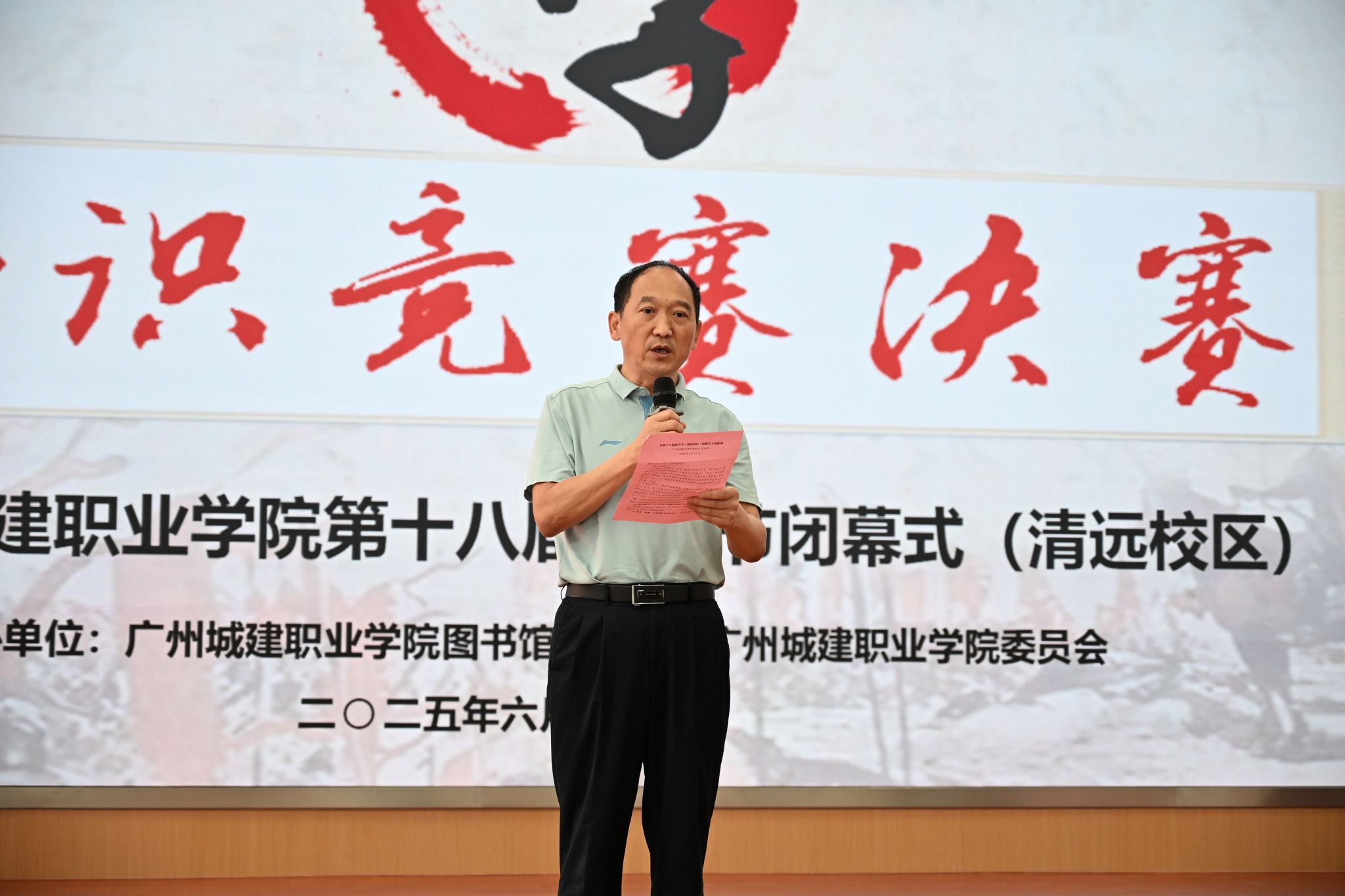 6月12日、13日下午,我校分別在清遠校區(qū)圖書館614報告廳、廣州校區(qū)人文藝術(shù)樓四樓報告廳舉行第六屆國學(xué)知識競賽決賽暨第十八屆讀書節(jié)閉幕式。副校長楊清國、鄢維峰出席活動并致辭,圖書館館長邵鐵武、學(xué)生處副處長曾德欽、圖書館副館長薛麗榮及兩校區(qū)340余名師生參加本次活動。