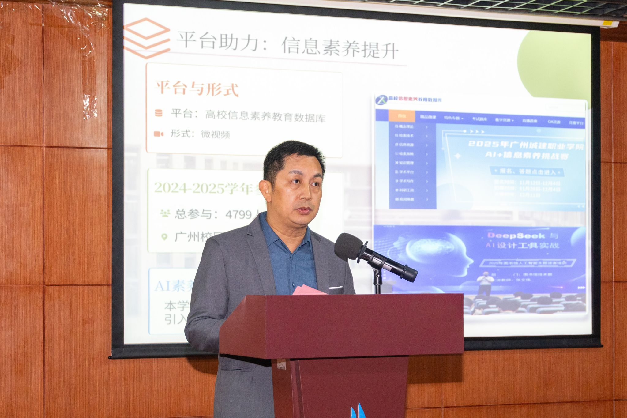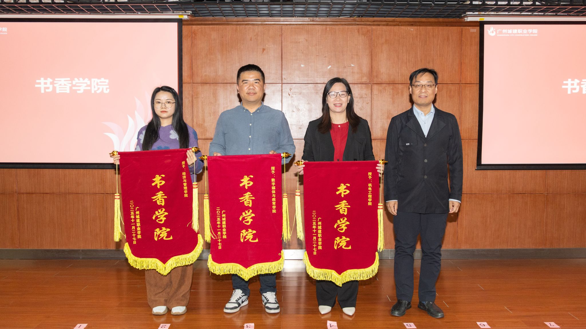 11月27日下午,我校廣州校區(qū)2024—2025學年書香校園建設總結表彰會在廣州校區(qū)圖書館305報告廳舉行。副校長鄢維峰,圖書館館長邵鐵武,教務處處長高華,機電工程學院、數(shù)字媒體與教育學院、藝術與設計學院學工領導,獲獎師生代表等200余人參會。會議由圖書館副館長薛麗榮主持。