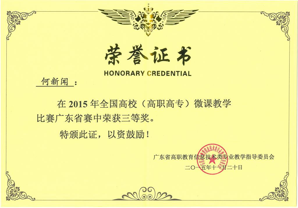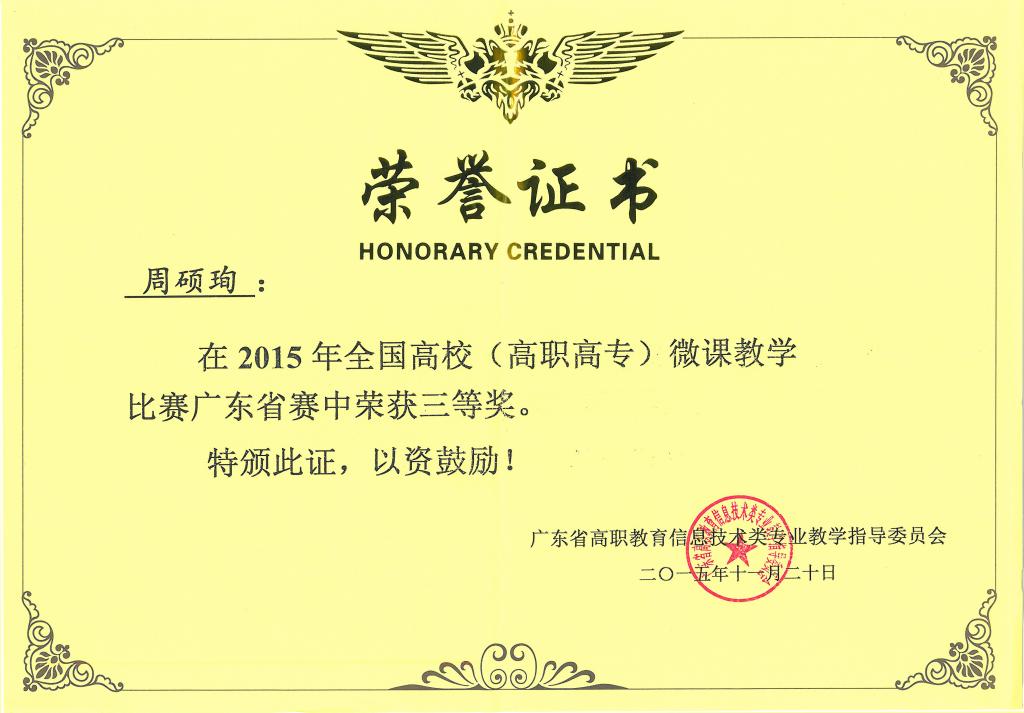 近日,從《關于表彰2015年全國高校(高職高專)微課教學比賽廣東省賽獲獎教師的通知》(粵高職信息教指委函〔2015〕6號)中獲悉,我校參賽的3個微課作品在2015年全國高校(高職高專)微課教學比賽廣東省賽中榮獲佳績。藝術與設計學院何新聞院長的《實木地面裝飾構造設計》、田甜老師的《Flash動畫制作基本流程》、周碩珣老師的《環(huán)浪領結構設計》均榮獲三等獎。