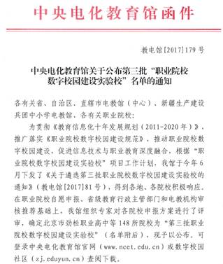 近日,經(jīng)教育部中央電教館評(píng)審,學(xué)校獲批為“第三批職業(yè)院校數(shù)字校園建設(shè)實(shí)驗(yàn)?!?。該項(xiàng)評(píng)選是全面貫徹《教育信息化十年發(fā)展規(guī)劃(2011-2020年)》、推廣落實(shí)教育部《職業(yè)院校數(shù)字校園建設(shè)規(guī)范》、加速推動(dòng)職業(yè)院校數(shù)字校園建設(shè)、有效促進(jìn)信息技術(shù)與職業(yè)教育深度融合的重要舉措。